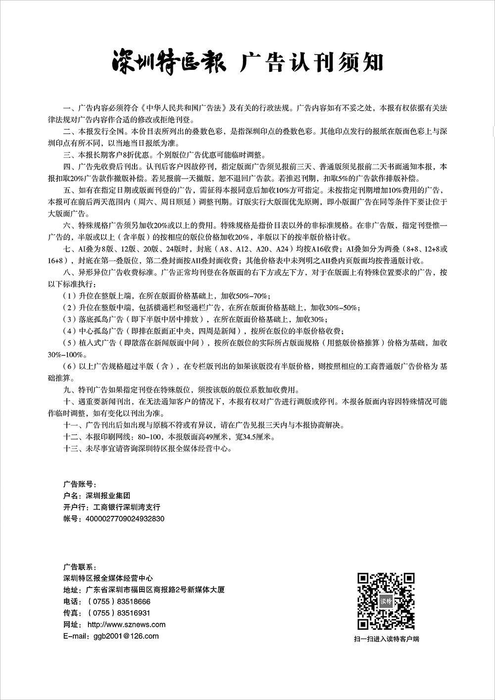 深圳特區(qū)報廣告認(rèn)刊須知