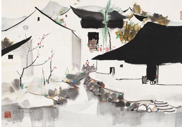 在滿足了基本需求后,孟浩凡才開始考慮,如何為這座古鎮(zhèn)保留傳統(tǒng)江南民居的神韻,又體現(xiàn)出現(xiàn)代學(xué)的美感和創(chuàng)意。他想到了畫家吳冠中。孟浩凡說(shuō),比起具象的元素,他更多考慮的是保留“氣質(zhì)”。“比如說(shuō)你看這色調(diào),色調(diào)是白墻綠瓦,中間有一些灰色系的這種磚,都是老色調(diào)的基底給我們的感覺(jué)。這種壓頂?shù)木€條,像吳冠中的畫,都是很抽象的嘛。畫江南民居,他畫出來(lái)很抽象的藝術(shù)畫,沒(méi)有具象的符號(hào),但是你一看這個(gè)東西它就是江南的,因?yàn)槲蓓數(shù)倪@種曲線、線條,勾勒出了江南的這種俊秀?!?/p>