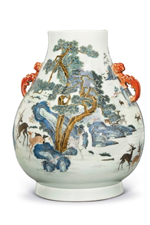 百鹿圖螭耳尊。