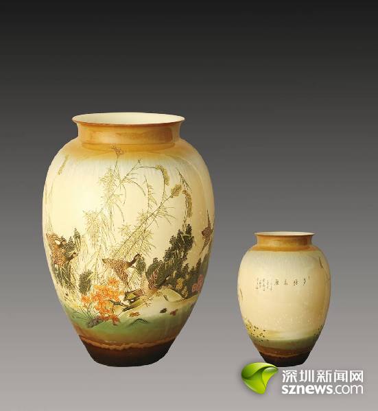 中國工藝美術(shù)大師寧勤征高度評價其作品:“沒骨花鳥與江南山水相交融的畫法,新彩與粉彩在色彩上的相互結(jié)合,在視覺上令人賞心悅目,在工藝上也是一項創(chuàng)新。這種創(chuàng)新,在某種意義上對景德鎮(zhèn)陶瓷藝術(shù)的發(fā)展,有著獨特的探索價值和啟迪作用?!?/p>