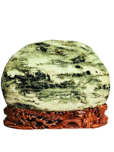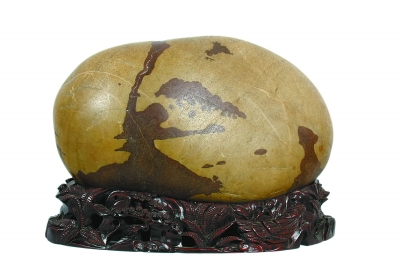金沙江卵石的種類繁多,主要有芙蓉石、墨畫石、油畫石、龜紋石、螺鈿石、松花石、丹彩石、牧羊石、金剛石、燙畫石、彩蠟石、金沙彩等。這些石頭到底有多好,水富縣的石友們總結(jié)出十大美——天然美、色彩美、線條美、石質(zhì)美、形象美、裝飾美、朦朧美、含蓄美、空靈美、意境美。如果沒有江水長年累月的沖刷和搬運(yùn),也就不會(huì)形成這么多美麗的石頭。水富縣奇石辦多次組織當(dāng)?shù)氐氖虆⒓尤珖?,幾年來,捧回特等?jiǎng)一枚,金獎(jiǎng)185枚,銀獎(jiǎng)420枚,優(yōu)秀獎(jiǎng)600枚。好像是在夸自己,曹會(huì)長說得有些臉紅,用手拍打起石頭來。在一旁的老伴兒說,老曹一高興就愛拍石頭,說石頭能聽懂他的話。這倒讓我想起著名美學(xué)家王朝聞贊美奇石的一首詩:“石居人外,人在石中。相擊相和,創(chuàng)造對(duì)方?!?/p>