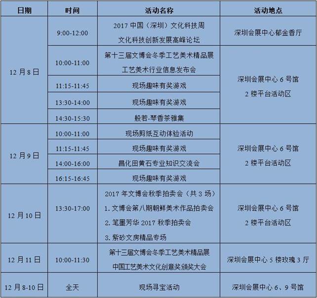 附:第十三屆文博會冬季工藝美術(shù)精品展暨2017中國(深圳)文化科技周活動安排