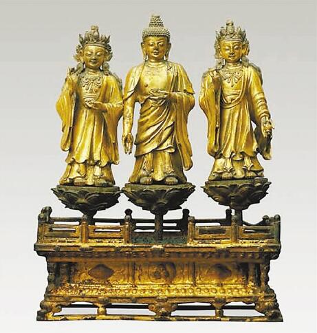 中國與佛教文化的聯(lián)系,在生活上,在文化上,在思想上,近年來在藝術(shù)品拍賣場上體現(xiàn)得尤為明顯。僅就2017年,春秋大拍期間各大拍賣場上就頻頻傳出佛造像拍賣過千萬乃至億元的喜訊。2017年3月15日,在佳士得紐約亞洲藝術(shù)周“宗器寶繪-藤田美術(shù)館藏中國古代藝術(shù)珍品”拍賣場上,北魏孝昌二年(公元526年) 比丘法興造釋迦三尊黃花石像以584.75萬美元成交。6月7日,北京保利2017春拍“自在菩提-中國金銅佛造像、唐卡”專場上,14-15世紀(jì)大隨求佛母以3000萬元落槌,加傭金以3450萬元成交。2017年6月8日,北京東正2017年春拍“皇家長物”專場上,清乾隆紫金璃瑪無量壽佛坐像以3400萬元落槌,加傭金3910萬元成交;而在“波若-佛教藝術(shù)”專場上,十四世紀(jì)銅鎏金白度母像以2300萬元成交。6月20日晚,在中國嘉德2017春拍“旃檀林-佛教藝術(shù)集萃”專場上,西藏11-12世紀(jì)合金銅釋迦牟尼佛站像以5100萬元落槌,加傭金以5865萬元成交。