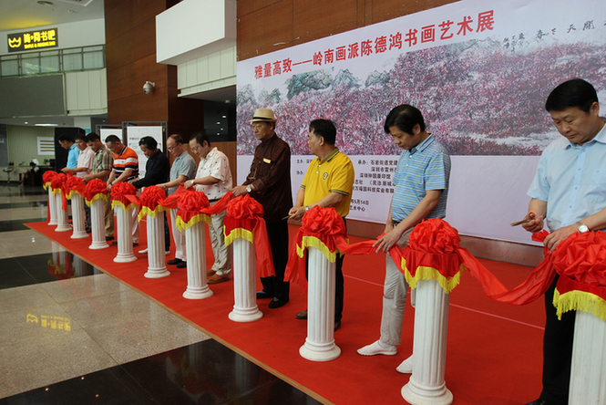 深圳新聞網(wǎng)訊(記者周錦春 通訊員孫善文)5月6日,雷州籍嶺南畫派青年畫家陳德鴻書畫藝術(shù)展在寶安區(qū)石巖文化藝術(shù)中心舉行,這是陳德鴻舉辦的第三十五場個(gè)人作品展,也是其在深圳地區(qū)舉辦的第七場。 本次畫展由寶安區(qū)美術(shù)家協(xié)會主辦,石巖街道黨建服務(wù)中心、深圳市雷州商承辦,廣東電視臺、深圳市湛江商會、深圳鐘國康印館、《書法報(bào)》深圳站、《伶仃洋》雜志社等單位協(xié)辦,展出了陳德鴻近期創(chuàng)作的60幅書畫作品, 200多名書畫名家和書法愛好者到場欣賞、祝賀,廣東電視臺及深圳多家媒體現(xiàn)場采訪報(bào)道。 ? “雅量高致”為陳德鴻在藝術(shù)上取得相當(dāng)突顯的成績后,其大學(xué)導(dǎo)師、書畫名家周彥生先生所題贈,其意為氣度寬宏,情致高雅,雅正不俗。這四個(gè)字也成為本次展覽的主題。 嶺南畫派成立于上世紀(jì)三十年代,秉承“折衷中外,融合古今”這一宗旨,不但保留了屬于自己的藝術(shù)風(fēng)格及繪畫理念,還將至適應(yīng)時(shí)代發(fā)展,創(chuàng)制出有時(shí)代精神、有地方特色、氣氛酣暢熱烈、筆墨勁爽豪縱、色彩鮮艷明亮、水墨淋漓、暈染柔和勻凈的現(xiàn)代繪畫新格局。 陳德鴻2004年畢業(yè)于廣州美術(shù)學(xué)院。求學(xué)期間,得到了關(guān)山月、黎雄才、陳金章、周彥生、林豐俗、劉書民等嶺南名家的指導(dǎo),從而為今日的異彩奠定了堅(jiān)實(shí)的基礎(chǔ)。在本科時(shí)期又直接受教于李勁堃老師、張彥老師。畢業(yè)后,他一直住在廣州美術(shù)學(xué)院,跟隨導(dǎo)師們上山下鄉(xiāng)寫生創(chuàng)作,前后整整十年,繪畫水平漸露崢嶸,并得到了導(dǎo)師的喜愛和贊賞。 十多年來,陳德鴻常往云南、山西、河南、廣西、安徽等地寫生,行萬里路,讀萬卷書,十年風(fēng)雨使得他有開拓的眼界來審視自身的繪事。在藝術(shù)的道路上,他不斷地探索著,在大自然間理解傳統(tǒng)繪畫的筆墨結(jié)構(gòu)與自然結(jié)構(gòu)。這種繪畫軌跡,亦是陳德鴻探索時(shí)期的痕跡,墨氣輕重有度,使得樸素人生詩意盎然。廣東省宣傳部原副部長胡中梅和區(qū)美術(shù)家協(xié)會主席閻敏在看了畫展后認(rèn)為,陳德鴻的作品畫面布局開合有致,氤氳雅麗,寫出了意境,體現(xiàn)出他對筆墨技法的運(yùn)用已經(jīng)純熟自如,返璞歸真,其作品意境獨(dú)特、功力深厚、構(gòu)圖新穎、集中體現(xiàn)了畫家的自然觀與社會審美意識。
