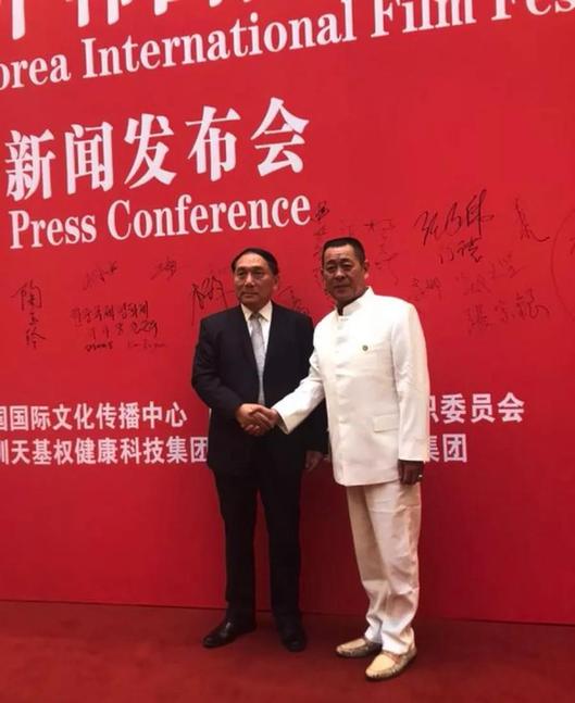 天基權董事長/總裁釋延豹與中韓國際電影節(jié)執(zhí)行委員長兼評審委員長張國立合影