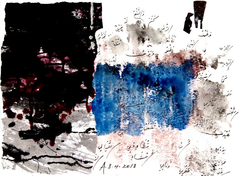 他的這種藝術(shù)實(shí)踐也可追溯至維克多·雨果(Victor Hugo)的繪畫,或進(jìn)一步,追溯至對(duì)其產(chǎn)生重大影響的超現(xiàn)實(shí)主義者那 —— 眾所周知,他們通過(guò)詩(shī)歌打開人類的感性,就像蘇菲主義,讓人沉浸在充滿詩(shī)意、超越一切的忘我境界。一切既相關(guān),又都未完成。阿多尼斯的每件拼貼-繪畫-手稿,都是詩(shī)人向我們發(fā)出的一個(gè)小小宣言,呼吁一種更開放、更含蓄、更微妙、更深刻、更感官、更有思想、更個(gè)性化、更政治化、更即時(shí)、更能持久的詩(shī)歌藝術(shù)。