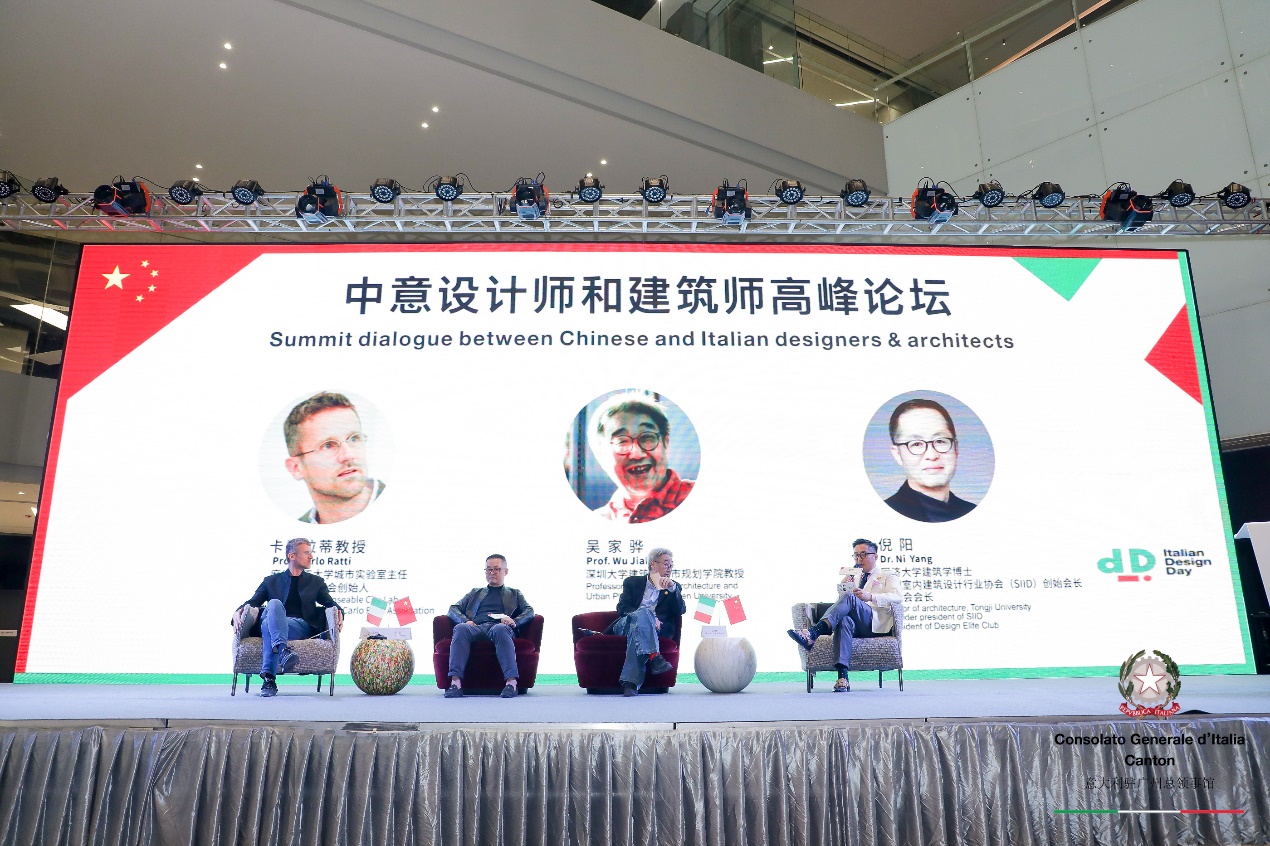 活動(dòng)還邀請(qǐng)到深圳大學(xué)建筑與城市規(guī)劃學(xué)院教授吳家驊、深圳室內(nèi)建筑設(shè)計(jì)行業(yè)協(xié)會(huì)(SIID)會(huì)長(zhǎng)倪陽(yáng)博士與Carlo Ratti (卡洛·拉蒂)教授進(jìn)行論壇對(duì)話。吳家驊教授從中國(guó)人的基礎(chǔ)思維,民族性上看待城市未來(lái)這一概念。他認(rèn)為人口、土地、資本綜合實(shí)力是決定未來(lái)城市的核心。同時(shí)他希望,在未來(lái),中意兩國(guó)能夠在城市設(shè)計(jì)上有更加深入的合作,達(dá)到“東學(xué)西建”的影響力,把中國(guó)設(shè)計(jì)師的創(chuàng)造性激發(fā)出來(lái)。倪陽(yáng)博士則表示,科技對(duì)于城市未來(lái)的影響力是極大的。大數(shù)據(jù)的發(fā)展,已經(jīng)能夠做到對(duì)未來(lái)城市的預(yù)測(cè),而設(shè)計(jì)這樣人文類(lèi)的工具,與科技的結(jié)合,為未來(lái)城市帶來(lái)的前景是可觀的。