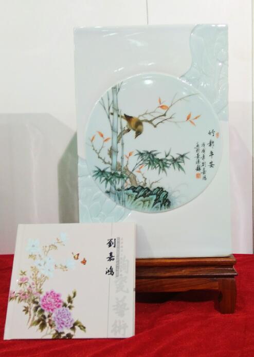 江西省陶瓷技能大師、江西省高級工藝美術(shù)師、惲派花鳥第十二代傳人、景德鎮(zhèn)青年陶瓷藝術(shù)家劉嘉鴻此次展會展出的陶瓷藝術(shù)作品共計35件,包含瓷板畫、瓷瓶、瓷盤、青花瓷、青花斗彩瓷等,其中《春滿園》、《錦堂富貴》、《長壽圖》等作品呈現(xiàn)陶瓷技藝,展示出劉嘉鴻深厚的藝術(shù)造詣。