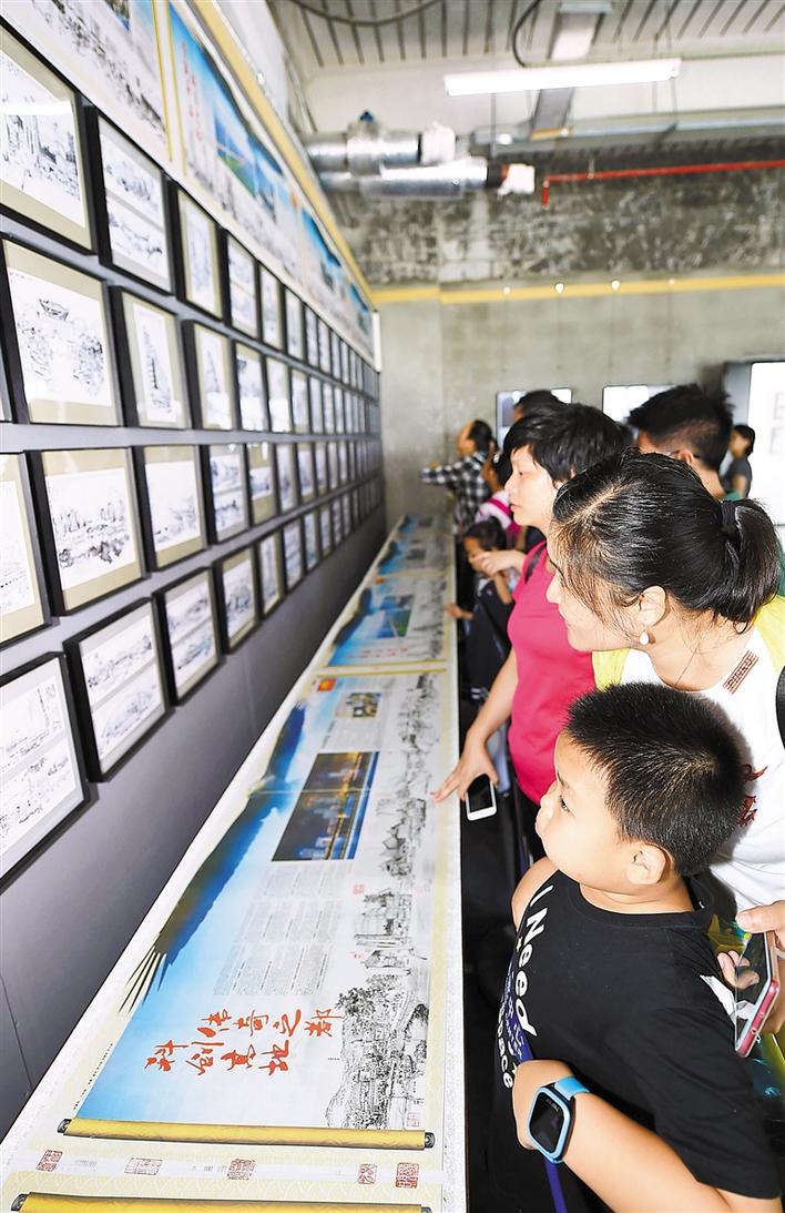 近日,第十五屆文博會配套文化活動——老鵬城人眼中的深圳精神《深圳千影繪畫攝影作品展》及《深圳千影畫卷》百名少年繪鵬城大型創(chuàng)作活動在深圳蛇口郵輪中心舉行,許多家長帶孩子來感受老鵬城人眼中的深圳精神。同時,現(xiàn)場展出的中國報(bào)業(yè)印刷史上罕見的《深圳商報(bào)》20連版新聞長卷,濃縮了深圳改革開放40周年經(jīng)歷,震撼觀眾。