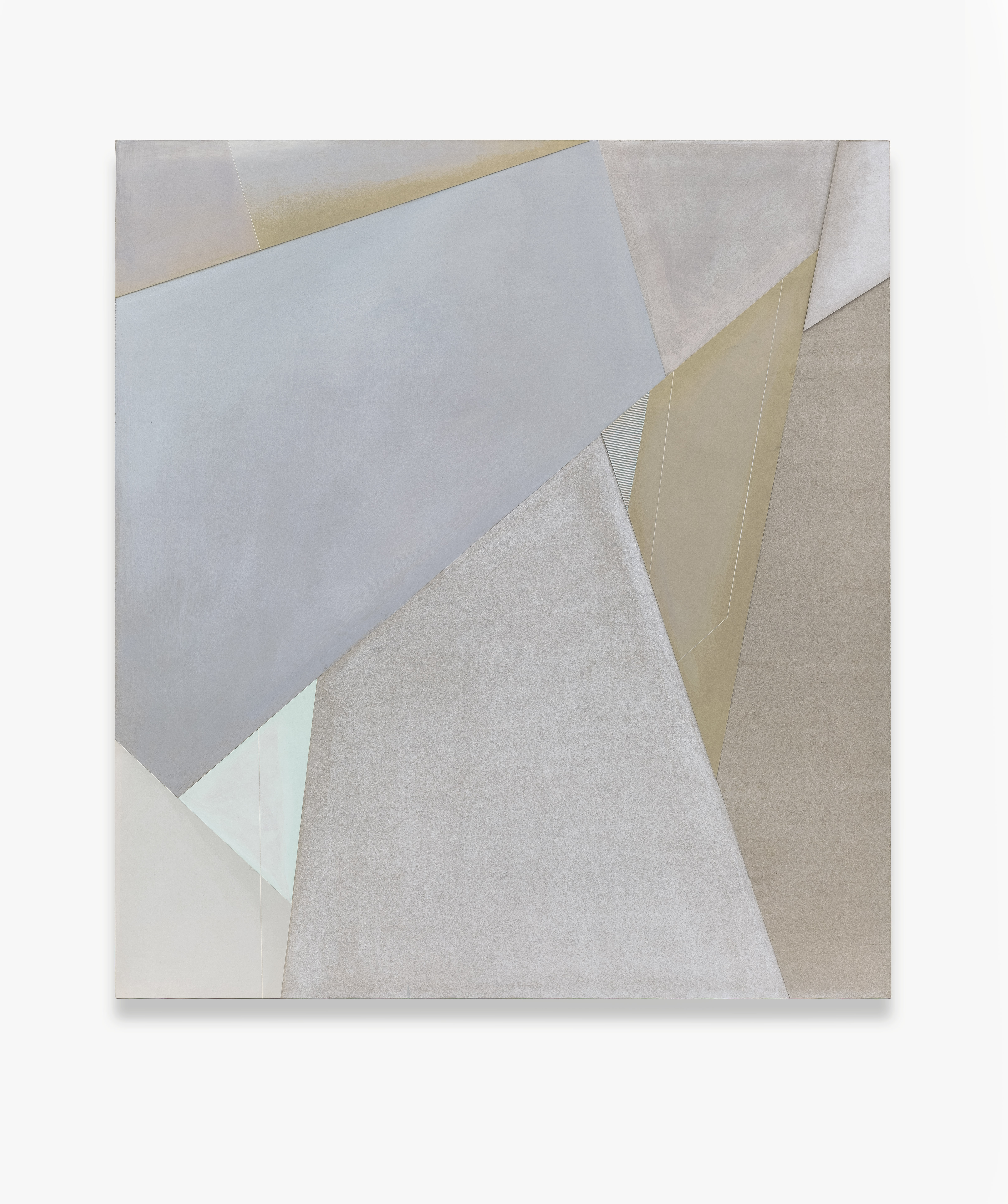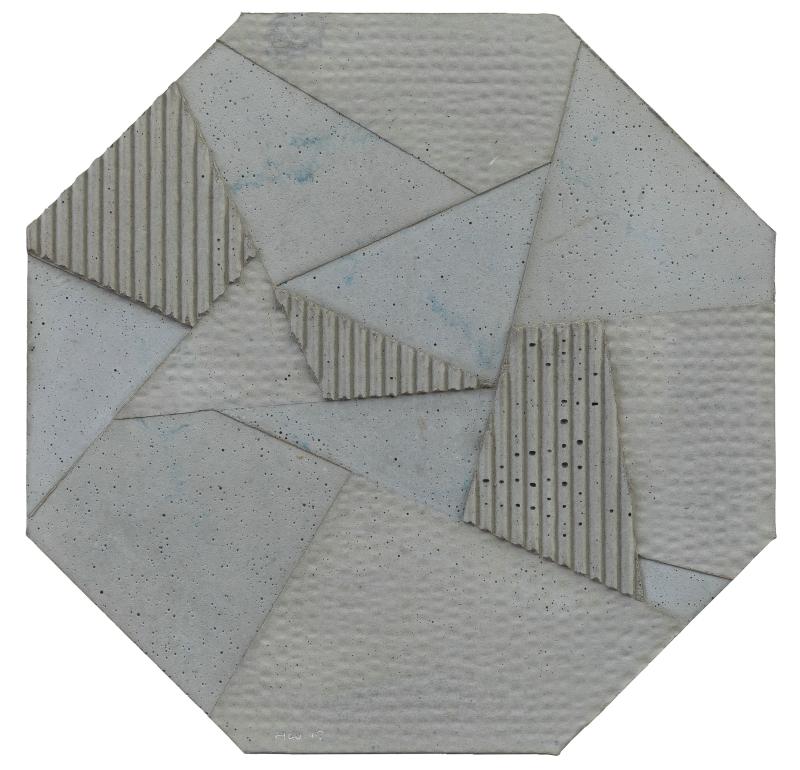 自2013年王豪開始以水泥作為個人創(chuàng)作媒介以來,三個系列“寂”、“樸”、“遠”并行展開?!凹拧焙汀皹恪睆娬{水泥作品的靜態(tài)特征,不論是單件作品還是多件組合作品,在水泥材料的細微變化與色塊搭配上,力求傳達出一種寧靜、樸拙的整體氣息;“樸”系列在形式上更為豐富,不僅嘗試使用斜線、三角形乃至圓形,還探索富于中國古典韻味的形式表達(例如對中國古代手卷的模擬);“遠”系列的名稱則來源于中國傳統(tǒng)山水繪畫所特有的透視技法“三遠”概念,這系列作品意圖通過畫面的動態(tài)表現(xiàn)打破二維空間限定,拓展平面繪畫的深度與廣度,從美學意境上與高遠、深遠、平遠相融合。