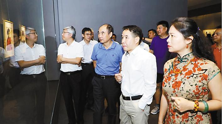 ▲王子武人物畫作品引起現(xiàn)場(chǎng)嘉賓濃厚興趣(主辦方供圖)