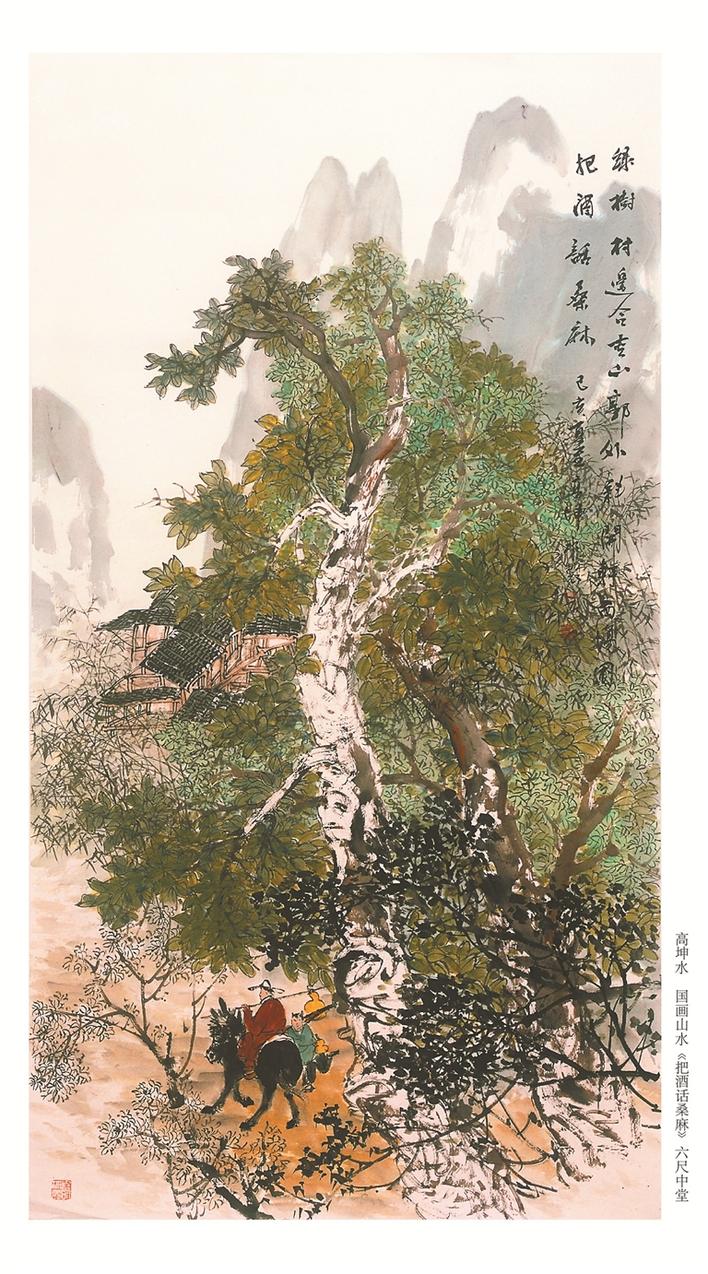 高坤水國畫山水《把酒話桑麻》