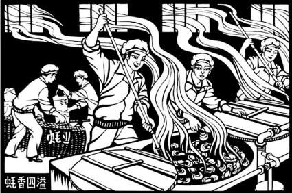 饒凱玉從來沒學(xué)過國畫,也沒接受過正規(guī)的美術(shù)教學(xué)。在集訓(xùn)一個(gè)月期間,老師給她一本書,建議她向國畫發(fā)展。她發(fā)現(xiàn)書里有幾幅小剪紙圖很有趣,突然勾起她的創(chuàng)作靈感,為什么不畫農(nóng)村題材呢?她決定創(chuàng)作農(nóng)村“四員”(出納、會(huì)計(jì)、保管、記工員),“四員”是當(dāng)時(shí)典型的社會(huì)人物?!拔也灰媷?,要刻紙成畫?!别垊P玉說。當(dāng)時(shí),她先用毛筆在紙上勾勒出形象,修改定稿,后用印寫紙反轉(zhuǎn)復(fù)印在刻紙上,再用刀刻紙成畫。