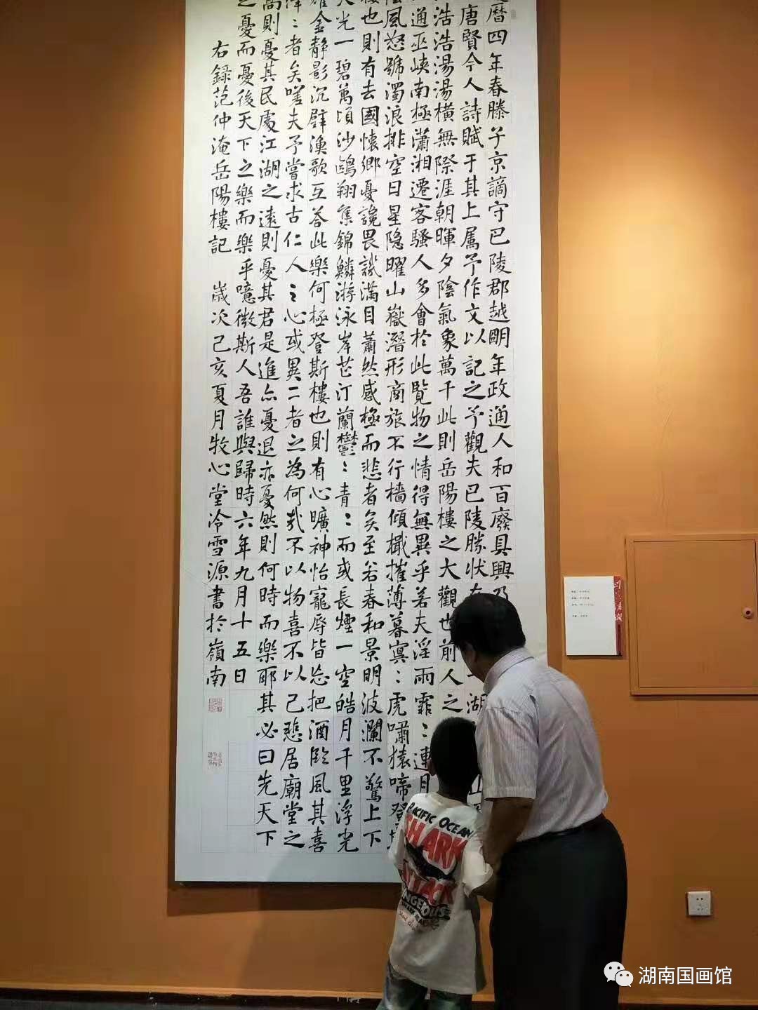 此次“問道瀟湘”是由深圳寶安書社、深圳寶安公共文化服務(wù)中心策劃的品牌活動,是繼問道江右、問道京華、問道周秦、問道河洛、問道燕趙之后的第六次“問道”活動,旨在帶上作品,通過展覽和交流,虛心請教,增進交流。展覽展出了王道國、萬迪龍、陳勝南、李銳、張琦、張綏平、鄭永兵、冷雪源、周志群、陳守斌、彭雙龍、蔣向前12位深圳書法家的100多幅書法精品,涵蓋篆、隸、楷、行、草、篆刻,氣象正大、功力深厚、風(fēng)格多樣、各有專長,既有切合時政的政治主題,也有自撰詩詞聯(lián)句和題跋作品;既有湖湘歷史題材佳作,也有深圳本土題材作品;既有丈二巨制,又有平尺小品。展覽的亮點是主展廳的九件丈二巨幅作品,從《不忘初心》到《春天的故事》,從《岳陽樓記》到王冕《墨梅》,筆力沉雄,氣象博大,受到與會專家和觀眾的好評!