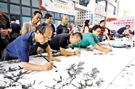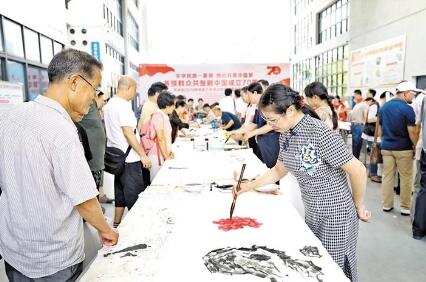 寶安日報2019年9月19日訊 9月18日下午,以“中華民族一家親,同心共筑中國夢——各族群眾共賀新中國成立70周年”為主題的書畫藝術(shù)筆會在龍華文化藝術(shù)中心舉行,80多位書畫名家現(xiàn)場揮毫,盡展中華民族文化藝術(shù)瑰寶魅力。
