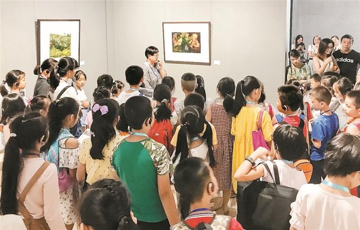 深圳美術(shù)館給孩子們組織了水彩藝術(shù)展覽的導(dǎo)覽活動。