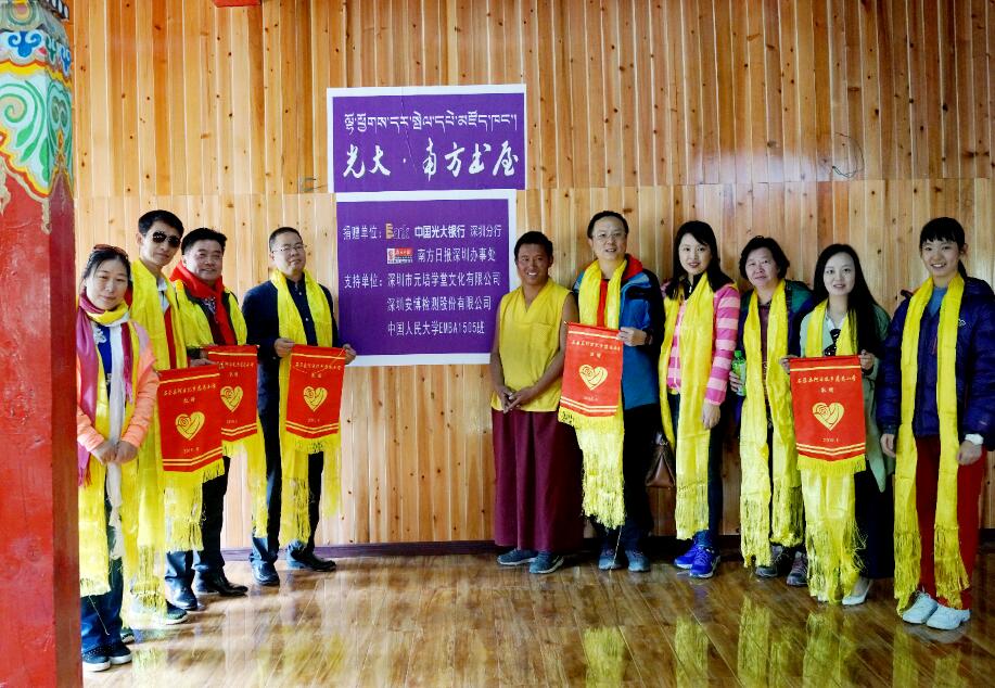 據(jù)了解,本次援建活動是為了幫助四川甘孜阿壩州石渠縣阿日扎鄉(xiāng)的中心小學(xué)與慈悲小學(xué)500多位孩子們,實現(xiàn)他們的“圖書室”與“音樂教室”的夢想。活動由光大銀行深圳分行、南方日報深圳辦事處共同主辦,人民大學(xué)商學(xué)院EMBA1505、元培學(xué)堂和安博檢測股份有限公司協(xié)辦。在這個活動中,來自深圳的光大證券、光大永明保險、光大信托、光大金控、光大期貨、光大環(huán)保、光大能源等光大集團駐深單位也積極參與捐款捐物,活動啟動僅兩周,就募集社會愛心人士等各類捐款40萬元,參與人數(shù)26000人。