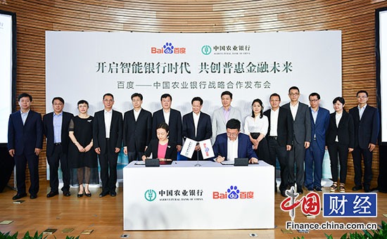 中國網(wǎng)財經(jīng)6月20日訊 20日,中國農(nóng)業(yè)銀行與百度戰(zhàn)略合作簽約儀式在北京舉行。據(jù)悉,雙方將圍繞金融科技領(lǐng)域開展全面合作,并將共建“金融科技聯(lián)合實驗室”,在智能金融服務(wù)領(lǐng)域進行深度研究。