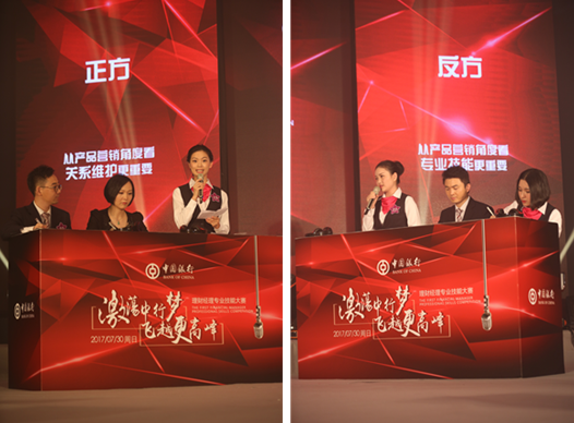 在辯論環(huán)節(jié),選手們采取3:3對(duì)抗辯論形式,圍繞著 “美元加息,現(xiàn)階段配置美元資產(chǎn)是否合理?”、“在服務(wù)客戶時(shí),關(guān)系維護(hù)和專業(yè)技能,哪個(gè)更重要?”兩大辯題進(jìn)行辯論,現(xiàn)場(chǎng)金句頻現(xiàn),精彩紛呈。此環(huán)節(jié)設(shè)計(jì),不僅考驗(yàn)理財(cái)經(jīng)理們的個(gè)人專業(yè)技能水平,還考驗(yàn)團(tuán)隊(duì)臨場(chǎng)發(fā)揮能力。