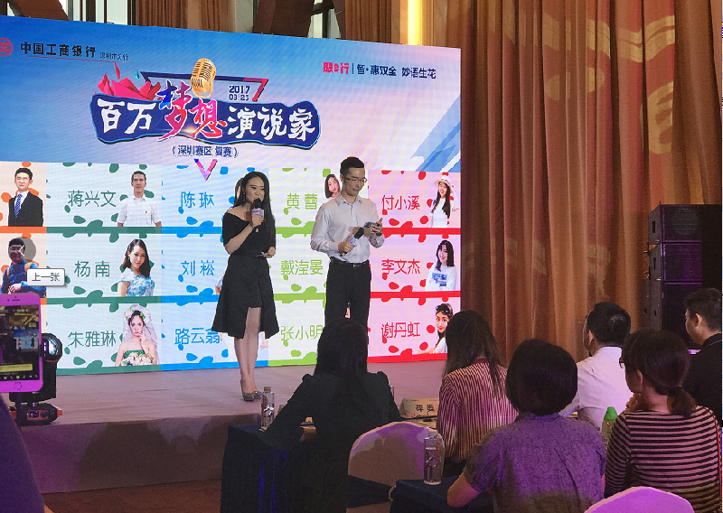 作為工行融e行(手機銀行)品牌營銷活動,“百萬夢想演說家”可謂是聲勢浩大。活動發(fā)動了工行所有員工進(jìn)行海選。此次復(fù)賽則在全國八大賽區(qū)分別進(jìn)行,其中華南地區(qū)采取線下復(fù)賽方式,從廣東(不含深圳)、廣西、海南、廈門、深圳五大分區(qū)甄選了15位夢想達(dá)人在深圳賽區(qū)進(jìn)行同臺PK。