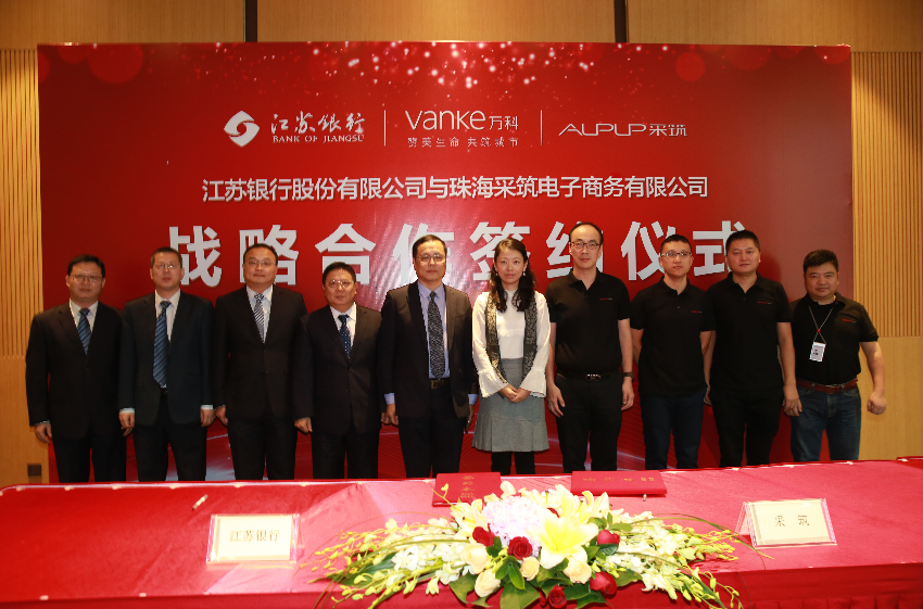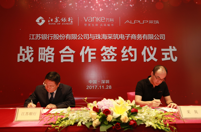 11月28日,采筑電商平臺發(fā)布會暨與江蘇銀行戰(zhàn)略合作協(xié)議簽約儀式在前海萬科國際會議中心成功舉行。萬科集團副總裁王蘊女士和江蘇銀行運營總監(jiān)趙輝先生受邀出席儀式并致辭,江蘇銀行行長助理兼深圳分行行長李敏與采筑電商平臺總經(jīng)理都軍代表雙方簽署戰(zhàn)略合作協(xié)議??傂泄緲I(yè)務(wù)部周愛國總經(jīng)理、深圳分行張慶光副行長等一行出席發(fā)布會暨簽約儀式。