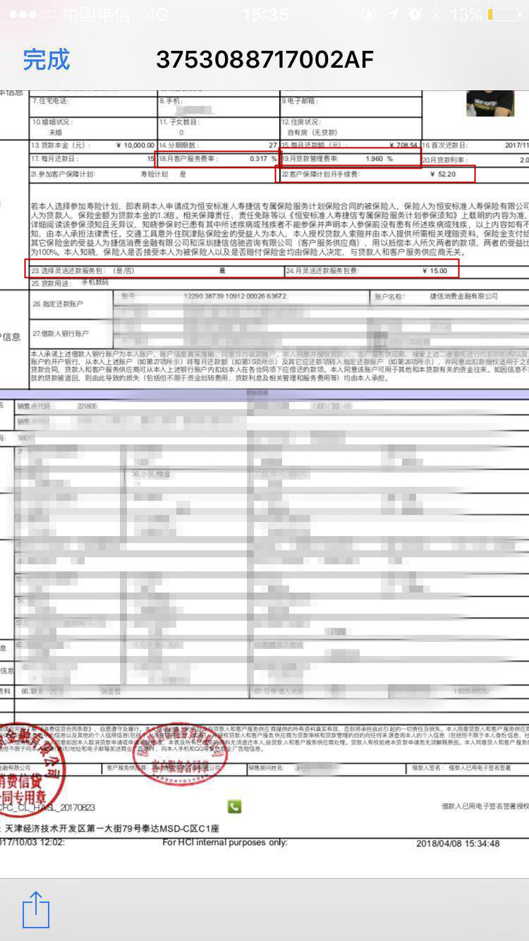 “整個(gè)貸款過(guò)程我都沒(méi)有和他們簽署任何紙質(zhì)合同,也沒(méi)見(jiàn)過(guò)合同,后來(lái)我投訴給他們,他們才提醒我捷信AAP里有合同,那份合同的資料、照片、簽名都是復(fù)制我購(gòu)買(mǎi)手機(jī)時(shí)第一次簽署的合同。要是早給我看合同,我絕對(duì)不會(huì)貸款的?!焙蜗壬嬖V記者。