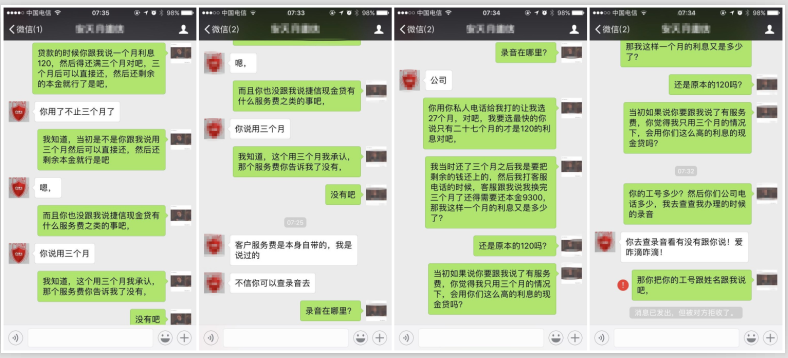 實(shí)際償還數(shù)與當(dāng)初協(xié)商數(shù)不符,何先生聯(lián)系到當(dāng)初為自己辦理貸款的捷信業(yè)務(wù)員,但是對(duì)方稱自己提醒過(guò)何先生有服務(wù)費(fèi),并要求何先生去捷信總公司調(diào)取錄音,但是當(dāng)何先生提出調(diào)取錄音時(shí),對(duì)方卻將他微信拉黑了。