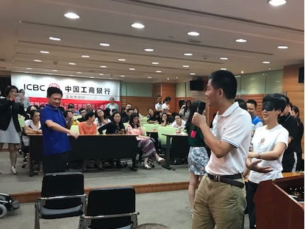 參加培訓(xùn)的工行員工們不但需要學(xué)習(xí)理論知識(shí),還需要進(jìn)行現(xiàn)場(chǎng)模擬操作。“這樣有助于我們深入了解殘障人士心理特點(diǎn),有效掌握與殘障人士溝通的技巧,提升我們的無(wú)障礙金融服務(wù)能力?!惫ば邢嚓P(guān)負(fù)責(zé)人表示。
