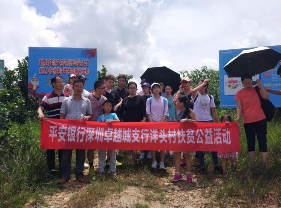 深圳新聞網(wǎng)訊 8月19日上午,為響應平安集團“三村工程”建設和平安銀行總、分行黨委關于扶貧工作的號召,踐行社會責任,平安銀行深圳卓越城支行客戶、員工一行25人前往該行對口扶貧村紫金縣龍窩鎮(zhèn)洋頭村開展了扶貧公益活動。