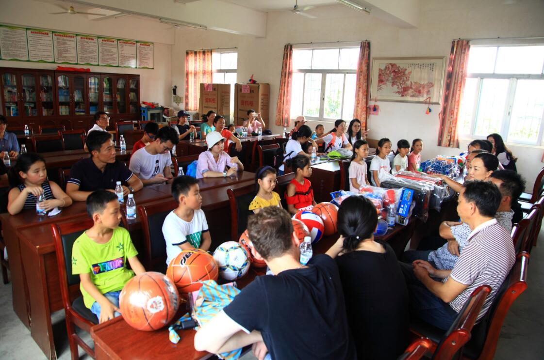 隨后,在村主任的帶領下,大家來到了洋頭小學,參觀了小學的教室、操場等教學設施,與校領導及部分學生進行了交流,并向?qū)W校捐贈了籃球、足球、排球、跳繩、羽毛球、乒乓球拍、拳靶、拳套等體育教學用品。這些體育用品受到師生們的熱烈歡迎,一些好奇的同學還當場穿戴上嶄新的拳擊手套為大家“表演”了一番。學校活動結(jié)束后,大家又參觀了該行扶貧生產(chǎn)種植基地——柚子園,園內(nèi)柚子碩果累累、長勢喜人,大家紛紛拍照留念。