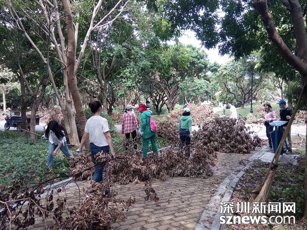 9月22日,臺(tái)風(fēng)過(guò)后小長(zhǎng)假的第一天,深圳農(nóng)村商業(yè)銀行積極響應(yīng)深圳市城管局和人大代表“人人行動(dòng),一起清潔美麗家園”的倡議,在全行發(fā)起了“愛(ài)心清理中心公園,還深圳一片干凈祥和”的志愿活動(dòng),全行70多名員工和家屬自發(fā)組成義工隊(duì),利用中秋小假期來(lái)到深圳市中心公園,積極參與搬運(yùn)殘枝斷木,清潔落葉垃圾的活動(dòng)。在清理公園路障過(guò)程中,深圳農(nóng)商行員工分工明確,男士負(fù)責(zé)倒塌樹枝、樹樁的疏通與清理,女士則主要負(fù)責(zé)零散枝丫、落葉的清掃。而當(dāng)清理至公園受災(zāi)最嚴(yán)重區(qū)域時(shí),深圳農(nóng)商行義工隊(duì)成員齊上陣,兩手并用,或是用力拖拽巨大的倒塌樹枝,或是通力協(xié)作抬抱沉重的實(shí)木樁,來(lái)來(lái)回回不斷將攔路樹枝收拾整齊歸攏到路邊,以方便公園管理處人員后續(xù)處理。此次清理工作持續(xù)了約3小時(shí),基本恢復(fù)了公園中心區(qū)綠道的通暢與整潔。路過(guò)的行人得知他們是義務(wù)進(jìn)行清理時(shí),無(wú)不駐足稱贊,而參與此次活動(dòng)的所有深圳農(nóng)商行人也同樣為自己感到驕傲。