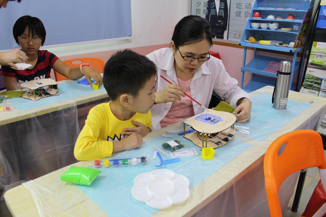 “創(chuàng)客智慧社區(qū)”親子創(chuàng)客活動(dòng)項(xiàng)目的通過(guò)親子間互動(dòng)互助,共同完成作品深入的體驗(yàn)科技創(chuàng)新的魅力,改善家庭親子關(guān)系,提升父母對(duì)孩子的引導(dǎo),提高家庭教育的質(zhì)量,豐富社區(qū)居民的科技活動(dòng),展現(xiàn)“人與科技”的關(guān)系及未來(lái)生活發(fā)展的思考,讓青少年持續(xù)擁有探索創(chuàng)造的能力。
