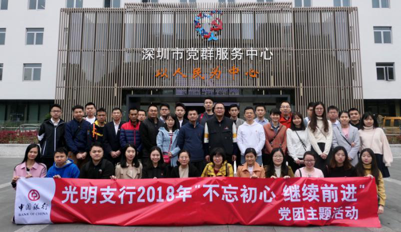 為進一步豐富黨團組織文化,增強黨員、團員干事拼搏、創(chuàng)先爭優(yōu)的意識,提升團隊凝聚力和向心力,12月8日,中國銀行深圳光明支行前往深圳市黨群服務(wù)中心開展“不忘初心繼續(xù)前進”黨團主題活動,該行轄內(nèi)中共黨員、預(yù)備黨員、發(fā)展對象、積極分子及共青團員共計50余人參加。