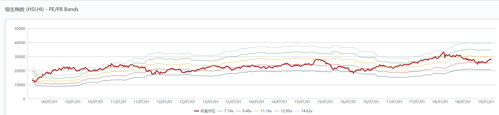 以上內(nèi)容僅僅是本輪反彈的拆解,如果將視野放到年內(nèi),經(jīng)過了2018年的殺估值(從14.62倍到9.4倍,35%),哪怕最悲觀的情況下,估值從目前的10.55到極端低估的7.74,估值的下殺空間不過26.6%,中性情況下,考慮到企業(yè)盈利盈利的增長(zhǎng),恒指下行的空間在目前環(huán)境下也很難超過10%,沒有重大事件的影響,恒指全年預(yù)計(jì)會(huì)在這個(gè)區(qū)間內(nèi)波動(dòng),但個(gè)股會(huì)出現(xiàn)比較明顯的分化,賺錢效應(yīng)要遠(yuǎn)遠(yuǎn)強(qiáng)于2018年,若是恒指出現(xiàn)恐慌性的調(diào)整,優(yōu)質(zhì)個(gè)股反而是趁亂買入的好機(jī)會(huì)。(智通特供)
