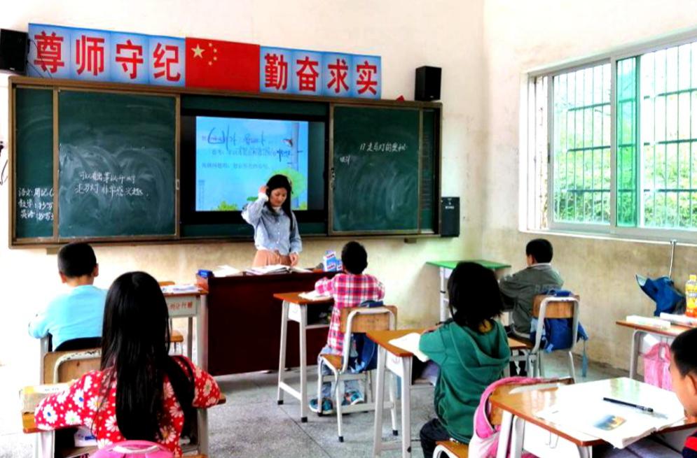 陂湖小學老師使用多媒體設(shè)備為孩子們授課