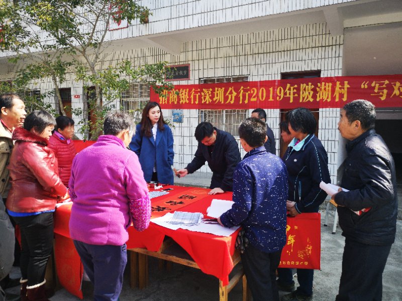 深圳分行組織“陂湖村寫春聯(lián)、送掛歷”活動現(xiàn)場
