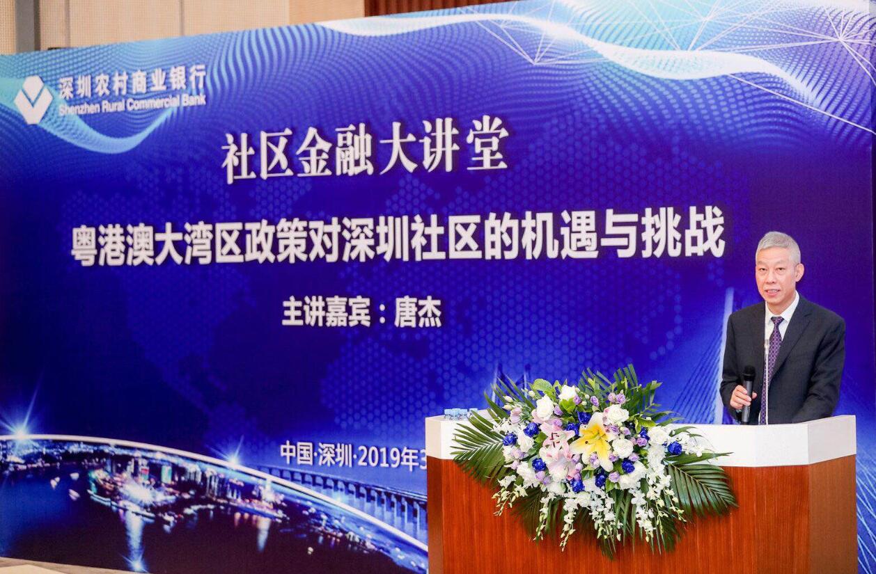 深圳新聞網(wǎng)3月22日訊 22日上午,由深圳農(nóng)村商業(yè)銀行主辦的“社區(qū)金融大講堂”在深圳市資本市場(chǎng)學(xué)院揭開帷幕。活動(dòng)邀請(qǐng)了龍崗區(qū)、坪山區(qū)及大鵬新區(qū)的社區(qū)企業(yè)代表參加,深圳農(nóng)商行董事長李光安出席并致辭,特邀嘉賓唐杰教授作主題演講,共話粵港澳大灣區(qū)政策對(duì)深圳社區(qū)的機(jī)遇與挑戰(zhàn)。