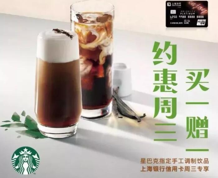 活動內(nèi)容:每周三持上海銀行信用卡實(shí)體卡片至深圳地區(qū)指定合作門店,資格驗(yàn)證通過后刷卡即享指定手工調(diào)制飲品買一贈一。