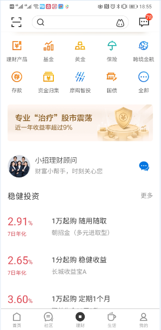 ?基金頻道:專門打造的基金平臺,幫助你智能化的自助選基,找到最合適的產(chǎn)品。多維度的首發(fā)專區(qū)、聰明定投、五星基金、貨基專區(qū)等特色基金服務(wù),國內(nèi)首個智能投顧產(chǎn)品“摩羯智投”,總有一款適合你。新手不懂也沒關(guān)系,招行幫你把控選購全程,在嚴(yán)控風(fēng)險的前提下,助你實現(xiàn)穩(wěn)健收益。