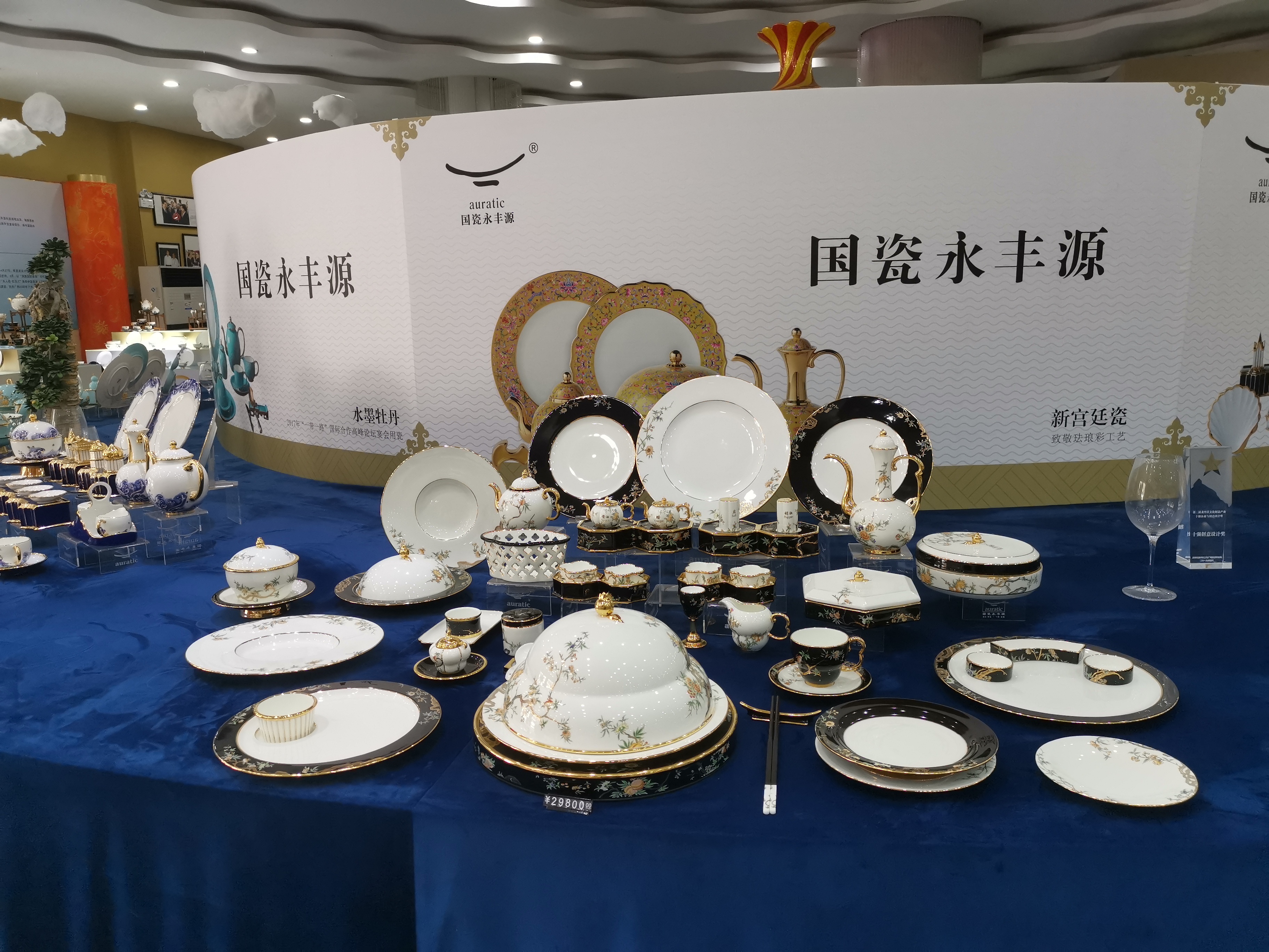 從2015年開始,國(guó)瓷永豐源生產(chǎn)的瓷器就頻繁出現(xiàn)在國(guó)際及國(guó)內(nèi)的重大會(huì)議的國(guó)宴用餐,以及慶典、節(jié)慶賀禮上。2018年以“先生瓷 ?四海升平”亮相博鰲亞洲論壇年會(huì)宴會(huì),成功款待世界賓朋;2017年承接“一帶一路”國(guó)際合作高峰論壇餐具任務(wù);2016年承擔(dān)杭州G20峰會(huì)夫人午宴用瓷設(shè)計(jì);2015年分別承攬中央政府贈(zèng)送西藏50周年與新疆60周年大慶官窯定制任務(wù)……