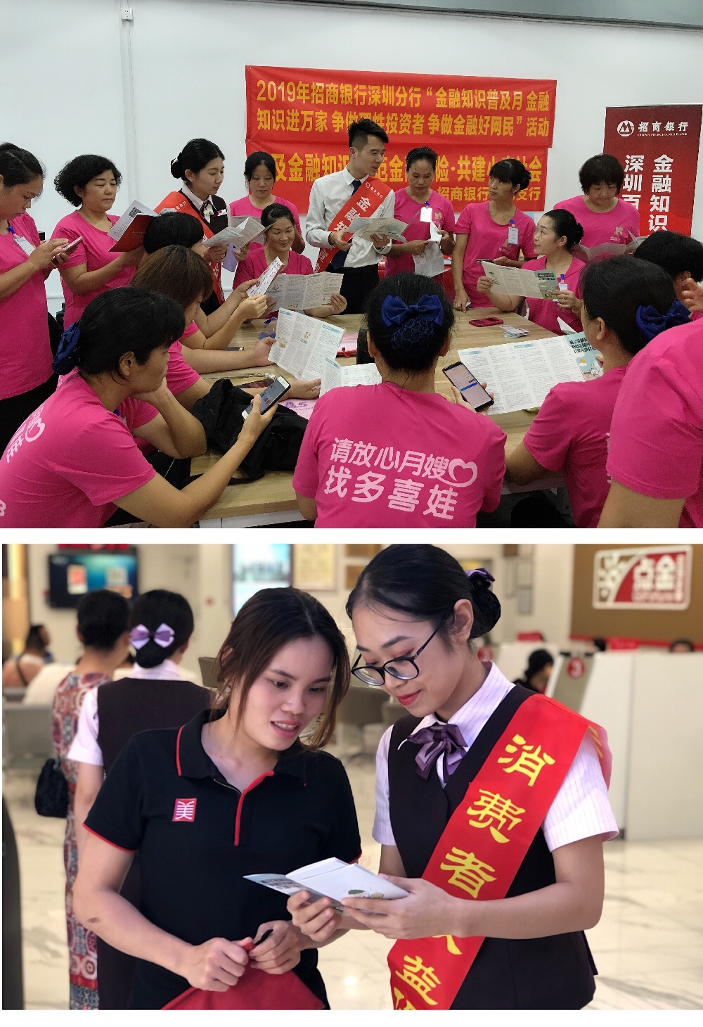 招商銀行深圳分行各網(wǎng)點(diǎn)落實(shí)分行黨委走進(jìn)產(chǎn)業(yè)園、走進(jìn)社區(qū)、走進(jìn)學(xué)校和醫(yī)院、走進(jìn)城中村“四個(gè)走進(jìn)”工作部署,針對(duì)月嫂、青年務(wù)工者、環(huán)衛(wèi)工人、老年人等不同群體開(kāi)展宣傳教育活動(dòng)。