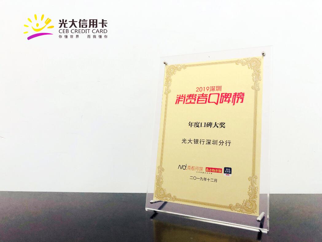 深圳新聞網(wǎng)訊 據(jù)悉,2019年12月18日,南方都市報(bào)舉辦“2019深圳商業(yè)品牌消費(fèi)者口碑榜”頒獎(jiǎng)典禮,光大銀行深圳分行榮登南方都市報(bào)“2019年深圳商業(yè)品牌消費(fèi)者口碑榜”。