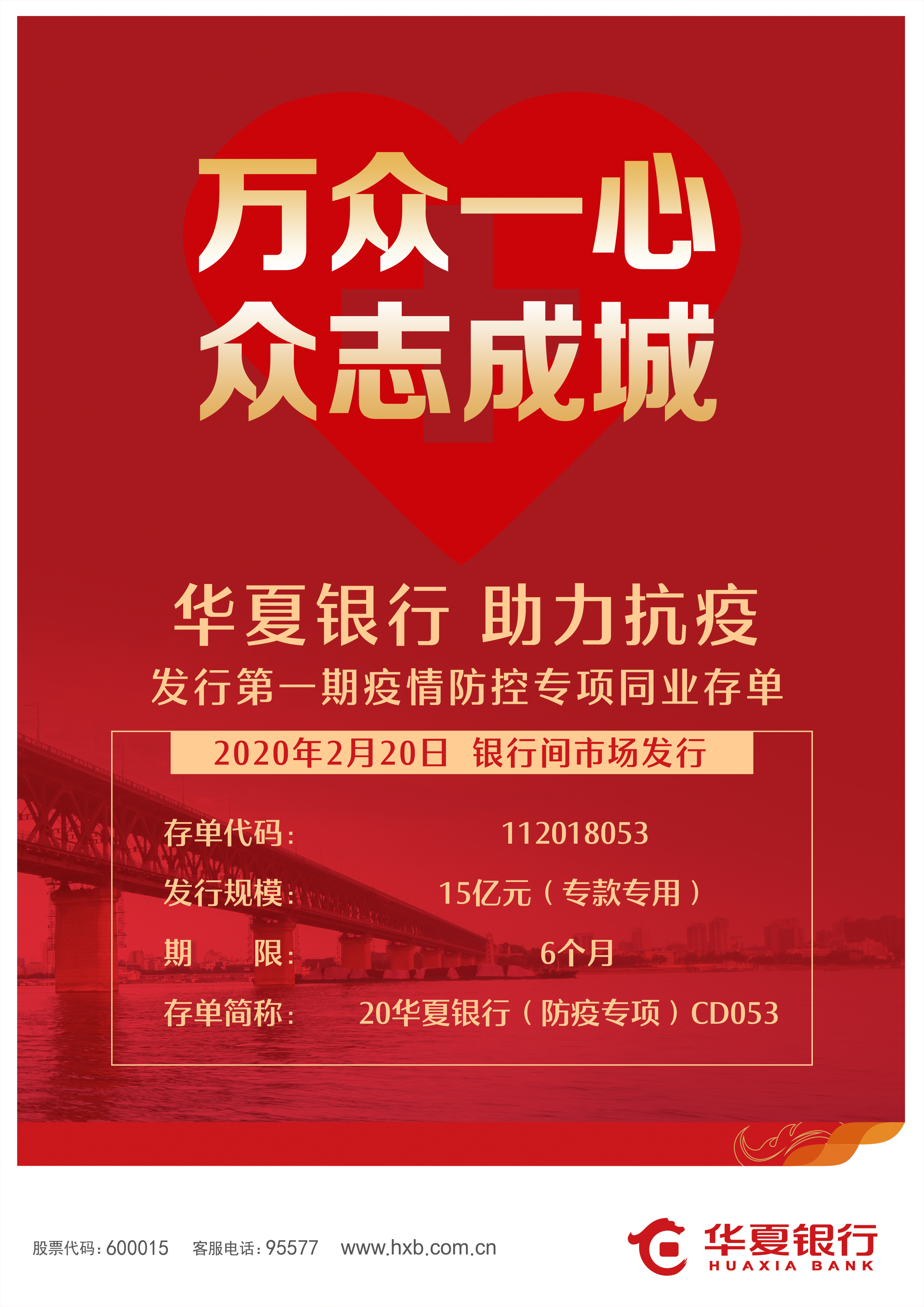 下一步,華夏銀行將堅(jiān)定不移地貫徹落實(shí)國(guó)家各項(xiàng)防控部署,積極主動(dòng)承擔(dān)起守望相助的社會(huì)責(zé)任,加大疫情防控的金融支持力度,與全國(guó)人民齊心協(xié)力打贏疫情防控戰(zhàn)。
