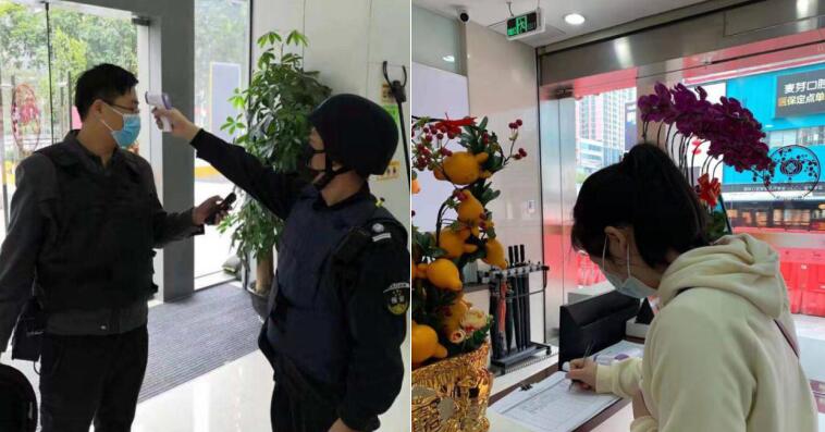 疫情發(fā)生后,寧波銀行深圳分行第一時間為網點員工準備了體溫計、洗手液、酒精、手套、口罩和護目鏡等防疫物資,督促員工測體溫、勤洗手、戴口罩,做好安全防護工作。網點做好到行客戶體溫檢測和基本情況登記工作,引導客戶減少聚集,快速辦理業(yè)務。
