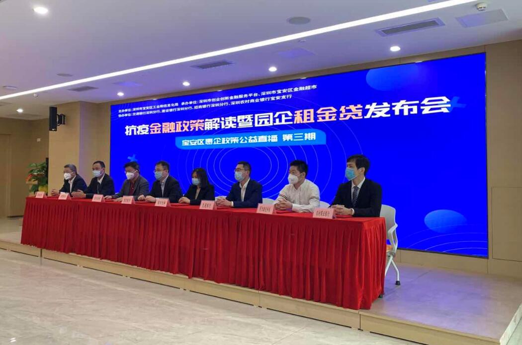 2020年3月11日,由寶安區(qū)金融超市組織的《抗疫金融政策解讀暨園企租金貸發(fā)布會》進(jìn)行在線直播,區(qū)工信局特別邀請深圳農(nóng)商行寶安支行作為發(fā)布會的四家協(xié)辦銀行之一,為企業(yè)講解“抗疫周轉(zhuǎn)貸”專項(xiàng)產(chǎn)品。發(fā)布當(dāng)天,深圳農(nóng)商行寶安支行與首筆租金貸客戶深圳市同為激光科技有限公司進(jìn)行了現(xiàn)場簽約。深圳農(nóng)商行寶安支行全力配合寶安區(qū)政府相關(guān)部門的金融抗疫工作,進(jìn)一步加大疫情期間對中小微企業(yè)復(fù)工復(fù)產(chǎn)的支持力度,為疫情防控持續(xù)貢獻(xiàn)金融力量。本次發(fā)布會共有1500余人在線觀看。