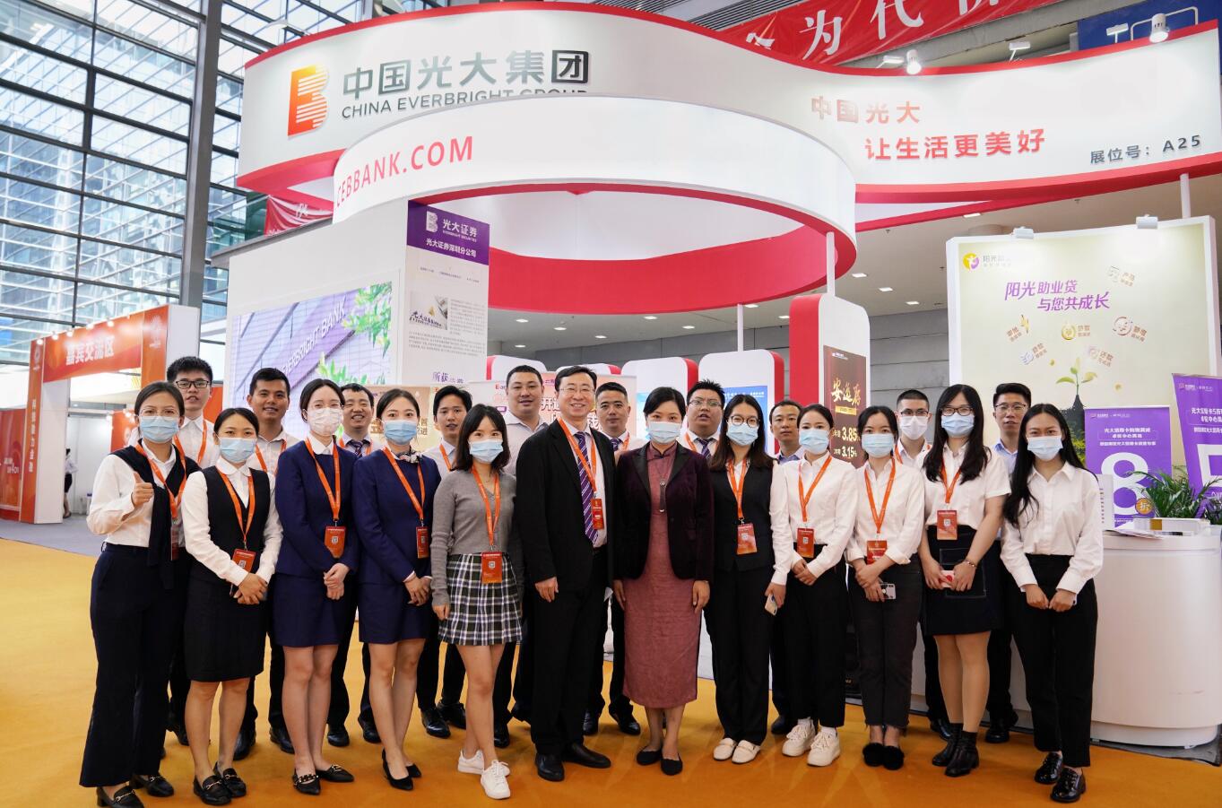 深圳新聞網(wǎng)·見圳客戶端2020年11月5日訊 近日,第十四屆深圳國際金融博覽會在會展中心舉行。在這場金融盛會上,光大銀行深圳分行攜手光大集團駐深單位——光大證券、光大保險、光大信托、光大期貨、中青旅等參展,范圍涵蓋銀行、證券、保險、期貨、信托等領(lǐng)域,向社會公眾展示了光大集團金融科技創(chuàng)新、普惠金融、社會責任等各方面成果,受到與會各界關(guān)注。其中,中國光大銀行日前發(fā)布的金融消費者權(quán)益保護品牌--“陽光消?!?/span>也正式在深圳金博會亮相,光大銀行帶來的“陽光”品牌矩陣讓參觀者印象深刻。
