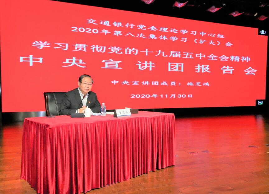 深圳新聞網(wǎng)·見(jiàn)圳客戶端2020年12月1日訊 昨日,交通銀行舉行學(xué)習(xí)貫徹黨的十九屆五中全會(huì)精神中央宣講團(tuán)報(bào)告會(huì)暨黨委理論學(xué)習(xí)中心組第八次集體學(xué)習(xí)(擴(kuò)大)會(huì)。中央宣講團(tuán)成員、中央政策研究室原副主任施芝鴻作宣講報(bào)告,黨委書(shū)記、董事長(zhǎng)任德奇主持報(bào)告會(huì)。