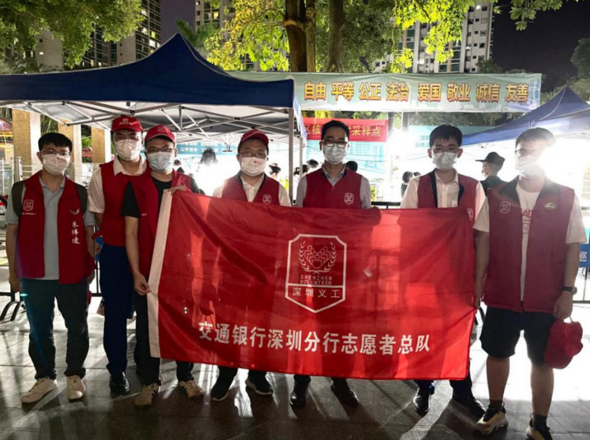 深圳交行還積極響應(yīng)深圳團(tuán)市委、深圳市義工聯(lián)合會(huì)號(hào)召,向青年員工發(fā)出志愿服務(wù)倡議,組織廣大青年團(tuán)員積極參與到核酸檢測(cè)志愿者隊(duì)伍中,筑牢疫情防控青春戰(zhàn)線。該行團(tuán)委、福田支行團(tuán)支部、光明支行團(tuán)支部和羅湖支行團(tuán)支部等多家單位志愿者深入社區(qū),在多處核酸檢測(cè)采樣區(qū)域,都能夠看到身穿紅馬甲的交行青年志愿者。