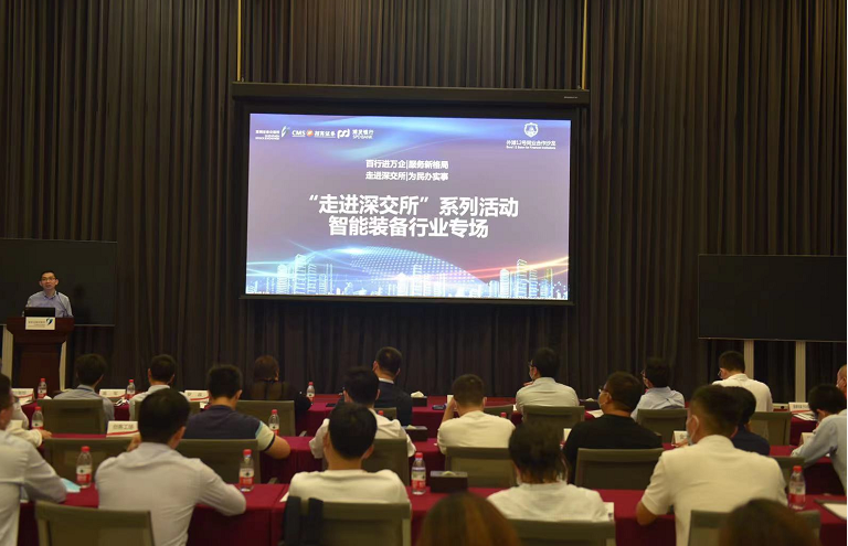 本次活動以智能裝備行業(yè)專場宣講與圓桌論壇為主,多家優(yōu)質(zhì)智能裝備企業(yè)參加?;顒娱_始,深圳證券交易所市場發(fā)展部與浦發(fā)銀行交易銀行部相關(guān)領(lǐng)導(dǎo)從國家政策面、經(jīng)濟(jì)面分析了中小企業(yè)、科創(chuàng)企業(yè)所處的歷史發(fā)展機(jī)遇,并介紹了“走進(jìn)深交所”系列活動的初衷與意義——“信息共享、流程互通、功能互補(bǔ),打造從0到1、從IP到IPO,共建為中小企業(yè)服務(wù)的金融生態(tài),攜手為國家經(jīng)濟(jì)發(fā)展貢獻(xiàn)力量”。隨后,深圳證券交易所、浦發(fā)銀行與招商證券介紹了智能裝備行業(yè)發(fā)展趨勢下的投融資規(guī)劃、上市路徑、支持政策以及相關(guān)金融服務(wù),并針對經(jīng)營發(fā)展困惑同與會企業(yè)進(jìn)行一對一、面對面的交流。