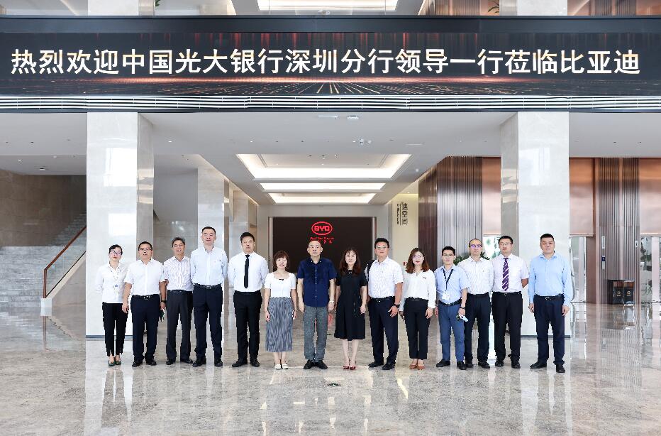 2018年12月11日,光大集團與比亞迪在中國光大中心簽署戰(zhàn)略合作協(xié)議。次年9月,李曉鵬董事長前往深圳調(diào)研比亞迪,與比亞迪董事長兼總裁王傳福進行工作會談,雙方合作更為密切。2021年6月9日,光大銀行深圳分行行長韓學智率隊拜訪比亞迪集團,雙方就踐行國家“創(chuàng)新、協(xié)調(diào)、綠色、開放、共享”發(fā)展理念,進一步落實中國光大集團與比亞迪集團重要戰(zhàn)略合作協(xié)議,深化綜合金融服務(wù),加強協(xié)同聯(lián)動發(fā)展等方面進行座談,為下一步光大銀行與比亞迪集團的合作打下堅實的基礎(chǔ)。